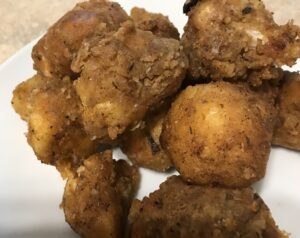 About this recipe: Well I know there are many Low protein recipes for this type of dish. I was looking for a recipe at the last minute for a low protein battered cauliflower recipe. my husband had bought this beautiful cauliflower and my mouth was watering for deep fried cauliflower of some kind. I looked at a few of my go to websites that are PKU recipes but I simply didn’t have all of those ingredients. I did a take on a recipe I found after searching. I found this and I adapted it to PKU needs. I was very surprised yet pleased how it turned out. It tasted just like an appetizer that I have ordered before at Pickle Barrel restaurant.! I was also determined even without having a deep fryer or an air fryer!! This version is not really difficult and not too many ingredients! I hope you will give it a try and enjoy it as much I have. See below for the recipe: